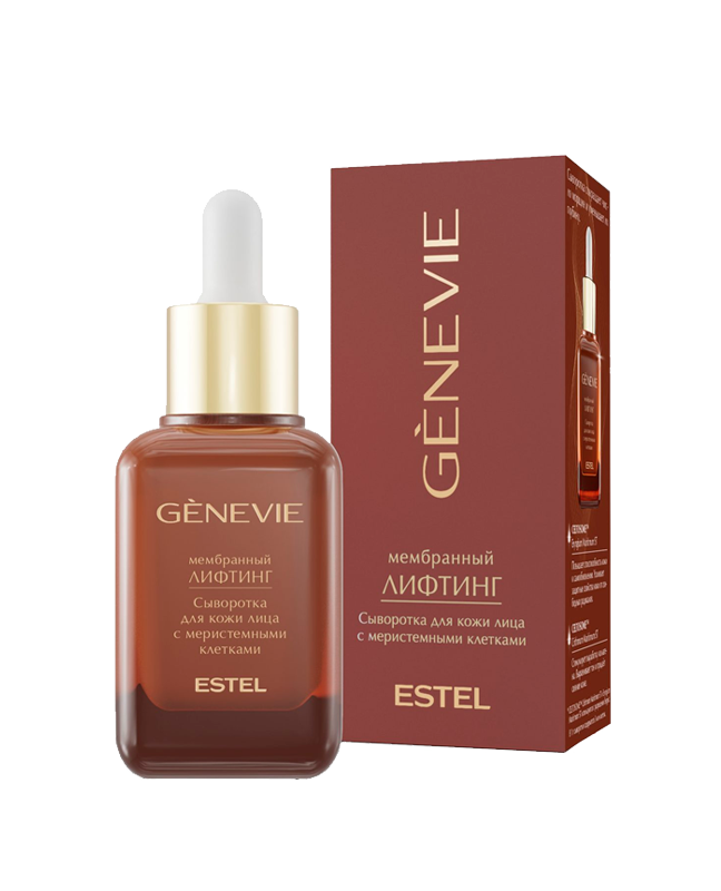 Сыворотка для кожи лица с меристемными клетками «Мембранный лифтинг» GENEVIE. Высокоэффективная сыворотка борется с возрастными изменениями кожи за счёт стимуляции выработки коллагена, естественной регенерации клеток и глубокого, длительного и интенсивного увлажнения всех слоёв кожи в течение 30+ часов.